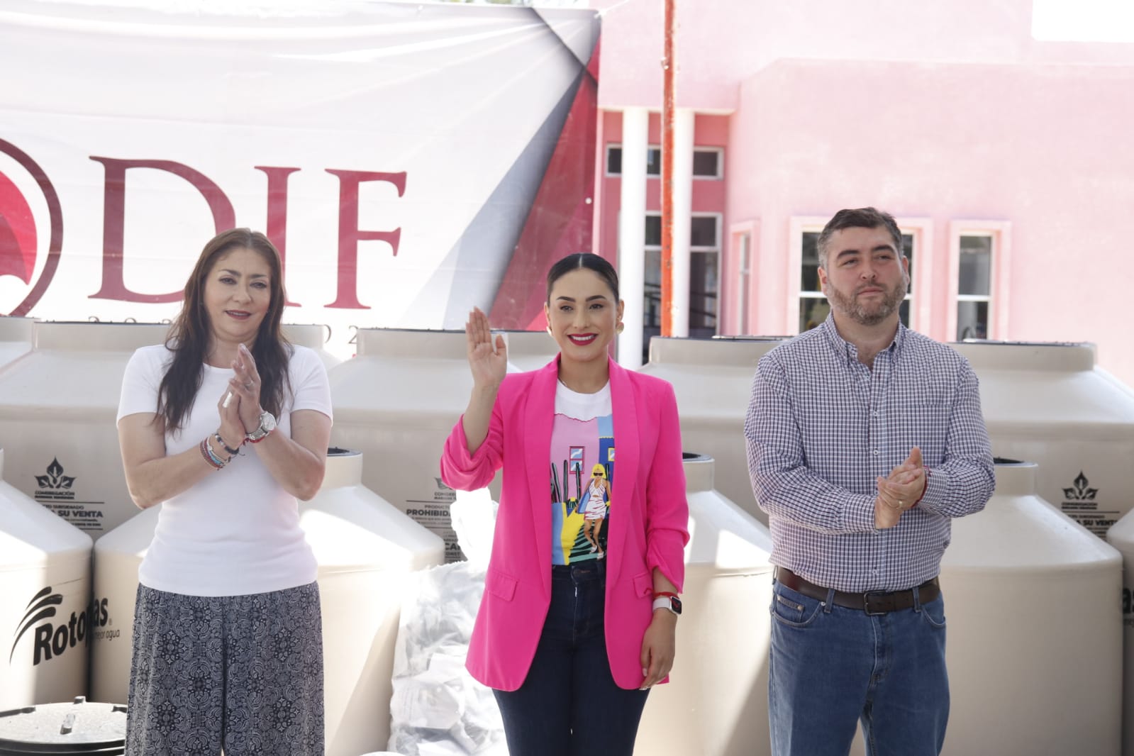 Contribuyendo a su bienestar y mejora de servicios básicos en el hogar, el DIF hizo entrega a 26 familias de los tanques de almacenamiento de agua, con capacidades desde los 450 hasta los 2 mil 500 litros.