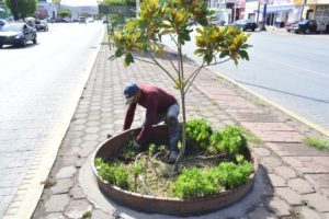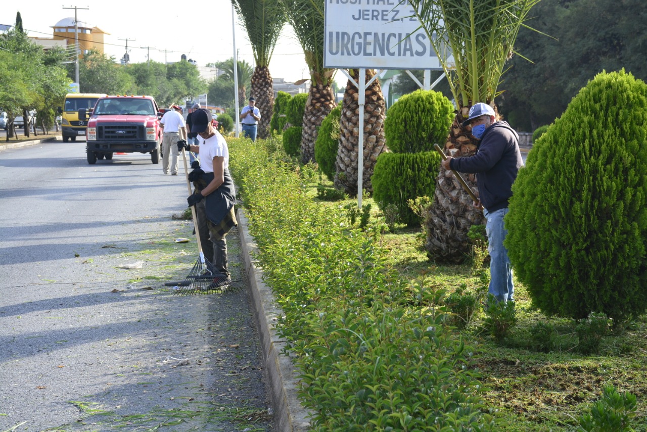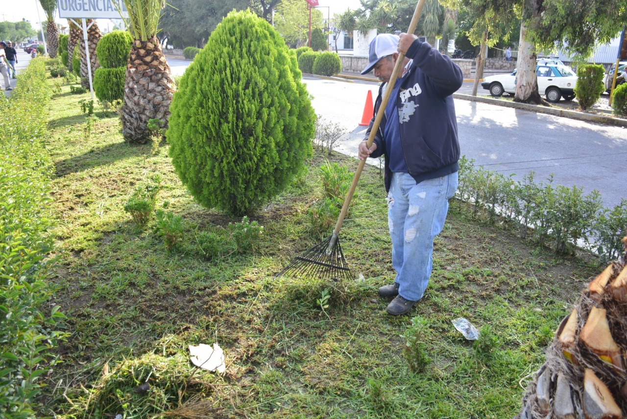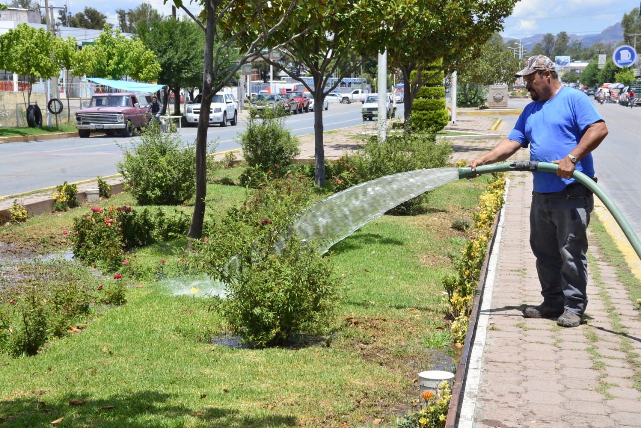 El Departamento de Parques y Jardines da mantenimiento continuó a las áreas verdes en distintos puntos de la cabecera municipal.