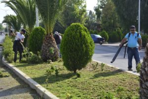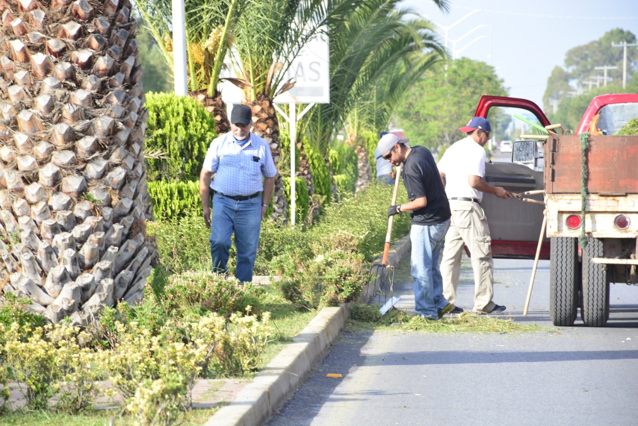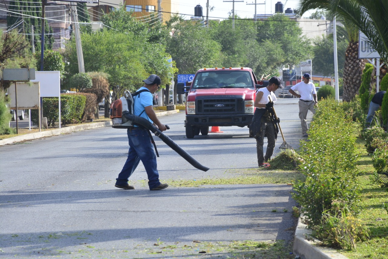 Personal del área realizó labores de poda y riego en los camellones del bulevar Suave Patria y 20 de Noviembre, con el apoyo del Departamento de Limpia que colaboró con barrido manual para dar una mejor imagen urbana.