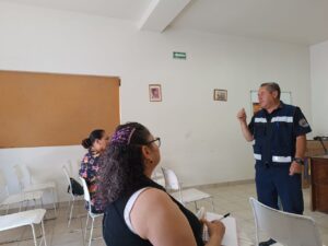 De igual manera se les brindó información teórica y práctica sobre la identificación de zonas de riesgo y de resguardo seguro, así como de primeros auxilios para adultos y menores.