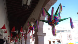 Son justamente las 45 piñatas que adornan la arquería del inmueble, en donde además se colocaron 400 bolos dentro de unos gorros, también con motivo navideño, mismos que son parte de los adornos; el 6 de enero se pretende hacer la fiesta para romper algunas piñatas y el resto obsequiarlas a la población, al igual que los bolos.