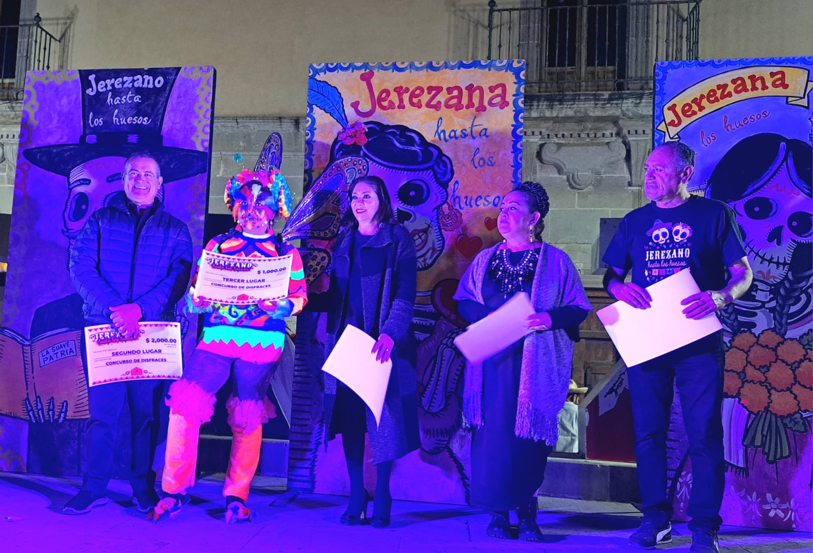 Fueron premiados los ganadores de los concursos que convocó el Gobierno Municipal, en el marco de actividades del Festival Jerezano Hasta los Huesos, en los que se incluyen elaboración de calaveras literarias, altares, carros alegóricos, fotografía y disfraces.