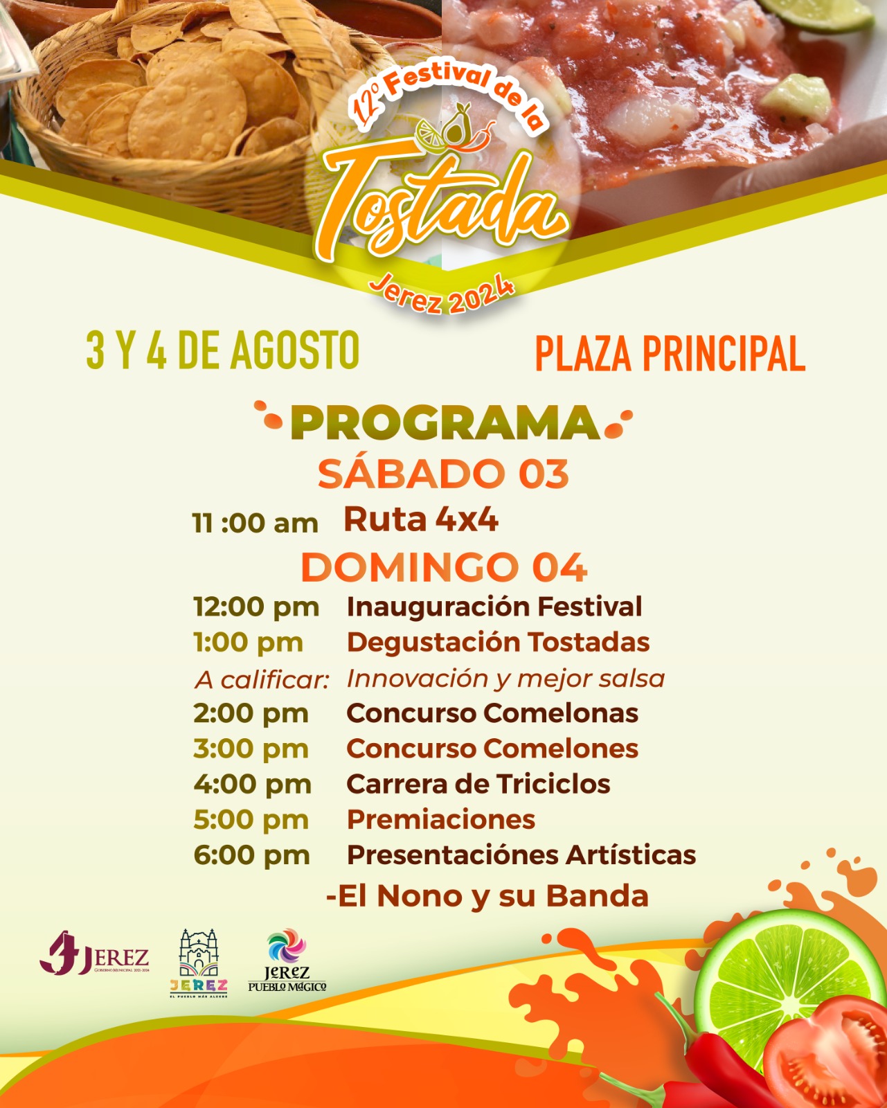 Todo está listo para que este fin de semana se célebre en Jerez, el tradicional Festival de la Tostada, en su décimo segunda edición, evento organizado por el Gobierno Municipal, a través de la Dirección de Turismo.