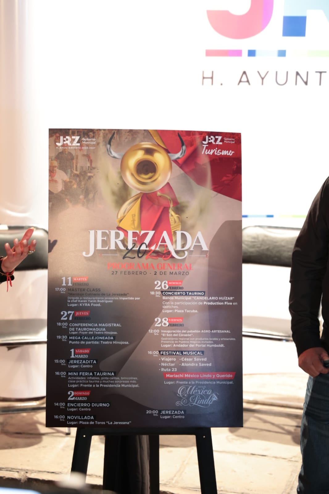 El presidente municipal, Rodrigo Ureño, dio a conocer el programa oficial de La Jerezada, que se llevará a cabo del 26 de febrero al 2 de marzo, ofreciendo a locales y visitantes una amplia variedad de actividades artísticas, gastronómicas y taurinas, además de impulsar el consumo local para fortalecer la economía.