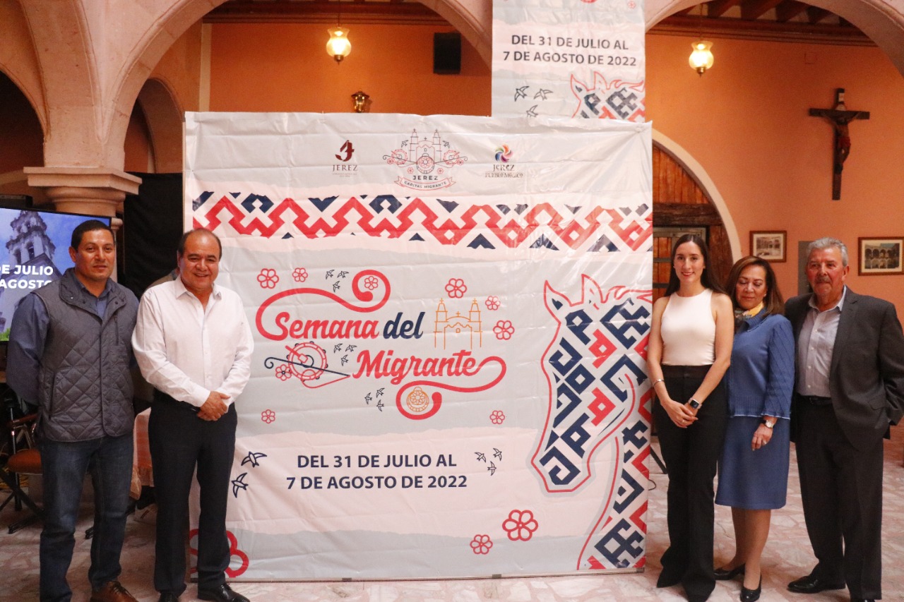 Jerez, Zac.- El H. Ayuntamiento de Jerez que encabeza el alcalde José Humberto Salazar Contreras, en coordinación con la Secretaría de Turismo estatal, realizaron la presentación oficial de la primera Semana del Migrante, que tendrá lugar en el Pueblo Mágico más alegre de México, del 31 de julio al 1 de agosto.