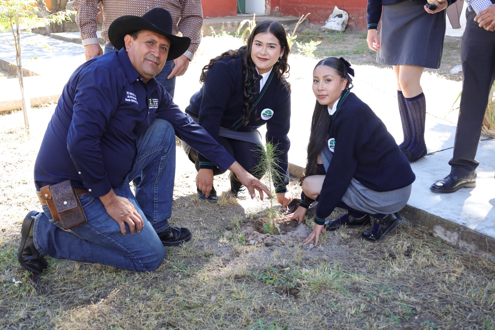 Al evento asistieron el responsable del plantel, Miguel Ángel Muñoz, y el delegado de la comunidad, Pedro Espinoza de la Cruz, además de alumnos y trabajadores del Departamento Agropecuario y Forestal, quienes apoyaron activamente en la reforestación.
