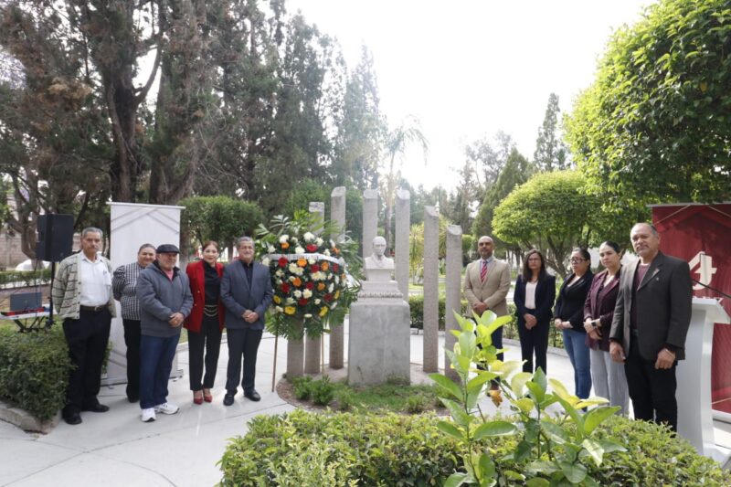 Jerez, Zac.-Al conmemorarse el 124 aniversario del nacimiento de Máximo Pérez Torres, las autoridades municipales lideradas por el alcalde José Humberto Salazar Contreras, rindieron homenaje al poeta campesino depositando una ofrenda floral frente al busto que lleva su nombre en el jardín del fraccionamiento Alameda de la ciudad.