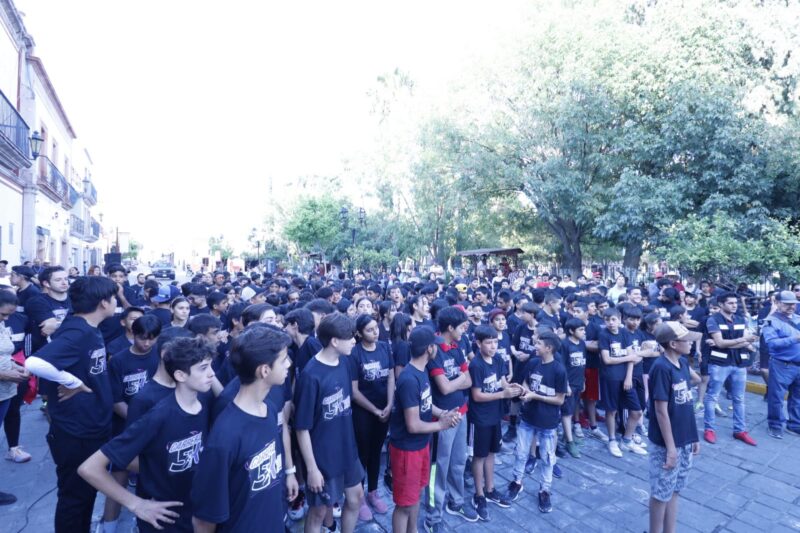 Cerca de 250 jóvenes alumnos de las escuelas secundarias Francisco García Salinas, Armando Cruz Palomino, Constituyentes de 1917, Ramón López Velarde, así como del segundo semestre de la Escuela Preparatoria V de la Universidad Autónoma de Zacatecas (UAZ), tomaron la salida frente a la presidencia municipal y recorrieron cinco mil metros por diversas calles de la ciudad.