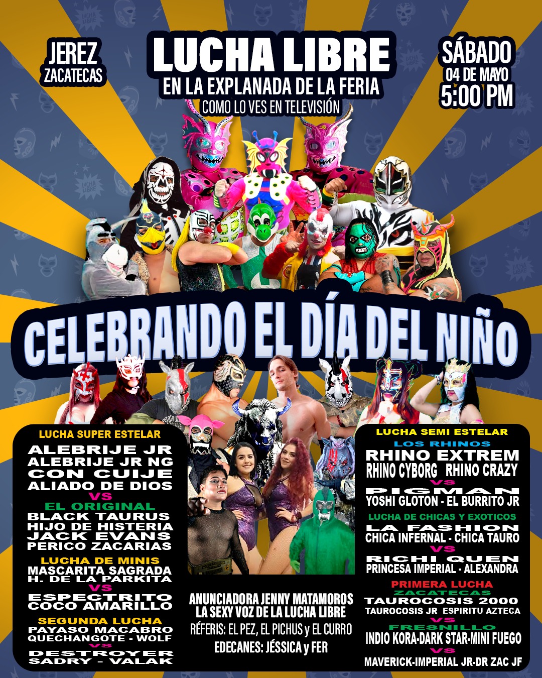 Estrellas de la Televisión como, Alebrije Jr., Alebrije Jr. NG, Black Taurus, Hijo de Histeria, Jack Evans y Perico Zacarías se enfrentarán en el cuadrilátero para diversión de todos los pequeños de Jerez.