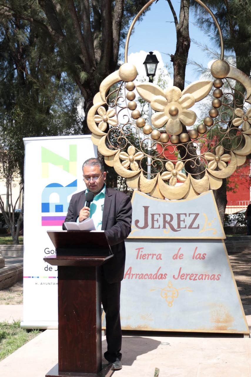 El cronista adjunto y coordinador del Comité de Pueblos Mágicos, Héctor Manuel Rodríguez Nava, ofreció una reseña histórica sobre la arracada jerezana, brindando a los asistentes un recorrido historiográfico que destacó el valor cultural, artístico y simbólico de esta tradicional pieza de arte orfebre.