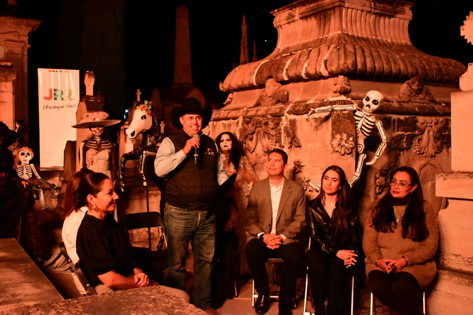 Teniendo como escenario el histórico Museo Panteón de Dolores, el Presidente Municipal Rodrigo Ureño presentó el programa del Festival “Jerezano Hasta los Huesos”. Del 28 de octubre al 3 de noviembre, Jerez se llenará de alegría y tradición para conmemorar una de las festividades más emblemáticas de México: el Día de Muertos.