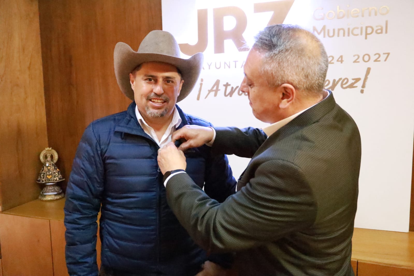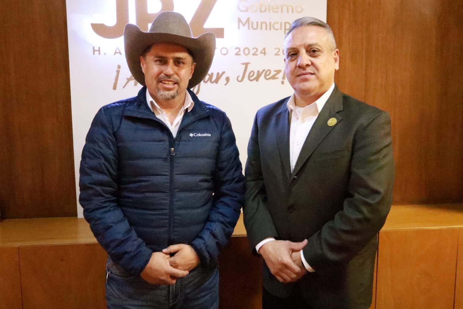 El Presidente Municipal de Jerez, Rodrigo Ureño, recibió al Vicealcalde de Aurora, Guillermo Trujillo, en una visita oficial que reafirma la hermandad entre ambas ciudades. Durante el encuentro, el Vicealcalde entregó una distinción especial a su homólogo jerezano como símbolo de los lazos de cooperación y apoyo mutuo que han caracterizado la relación entre estas alcaldías.