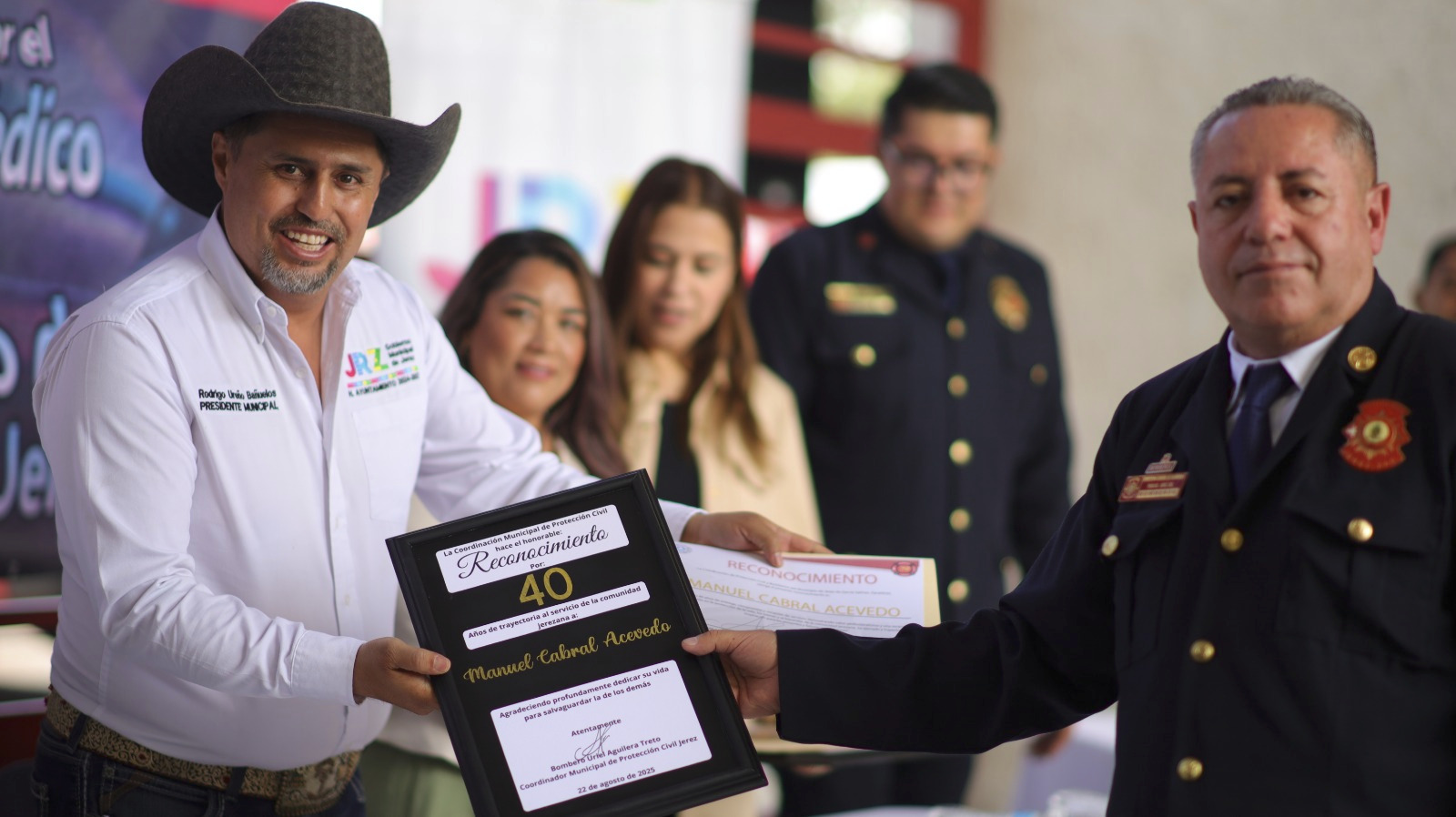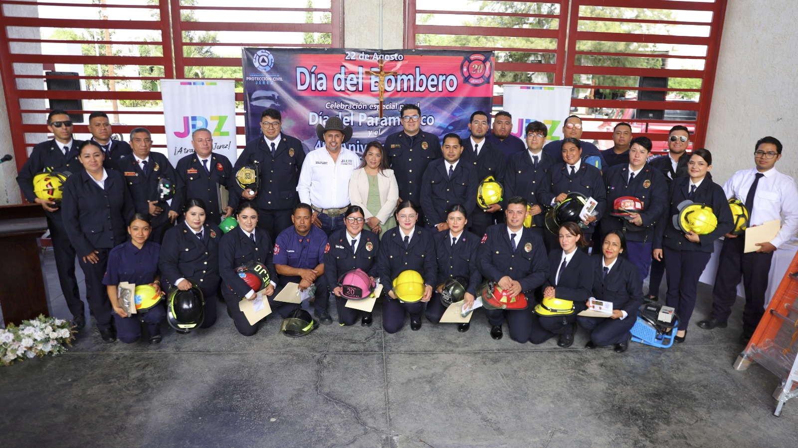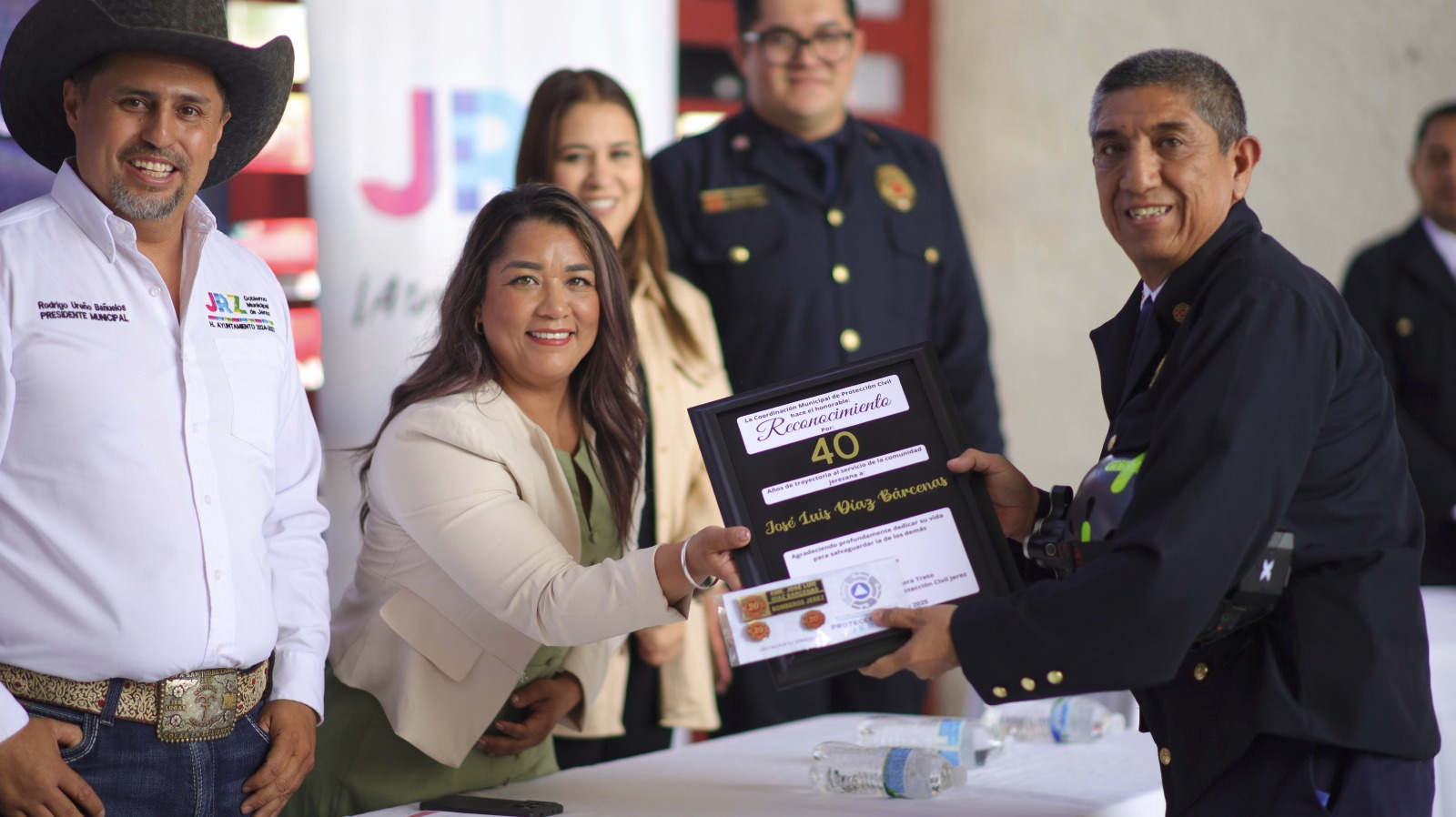 Por su parte, el jefe de Protección Civil y Bomberos de Jerez, Uriel Aguilera Treto, agradeció el apoyo del alcalde y del Ayuntamiento, destacando que se ha priorizado la seguridad y el cuidado de la vida de la ciudadanía. Además, invitó a los bomberos a seguir trabajando unidos, con disciplina, humildad y pasión en beneficio de la sociedad.
