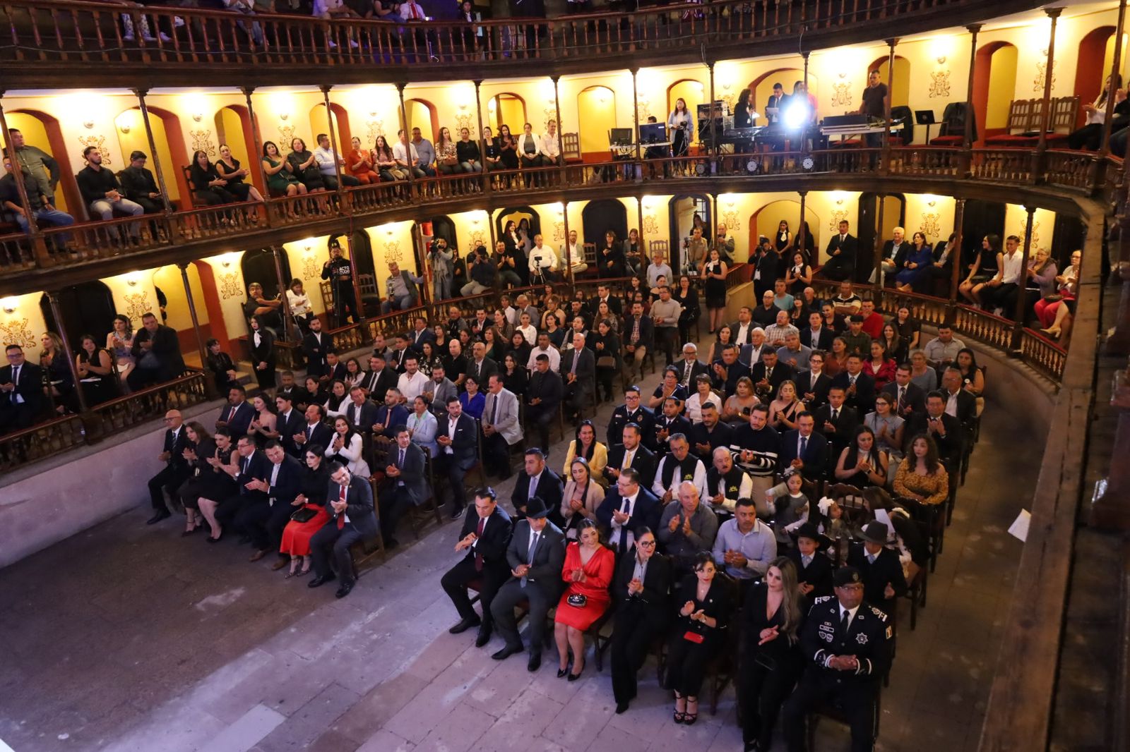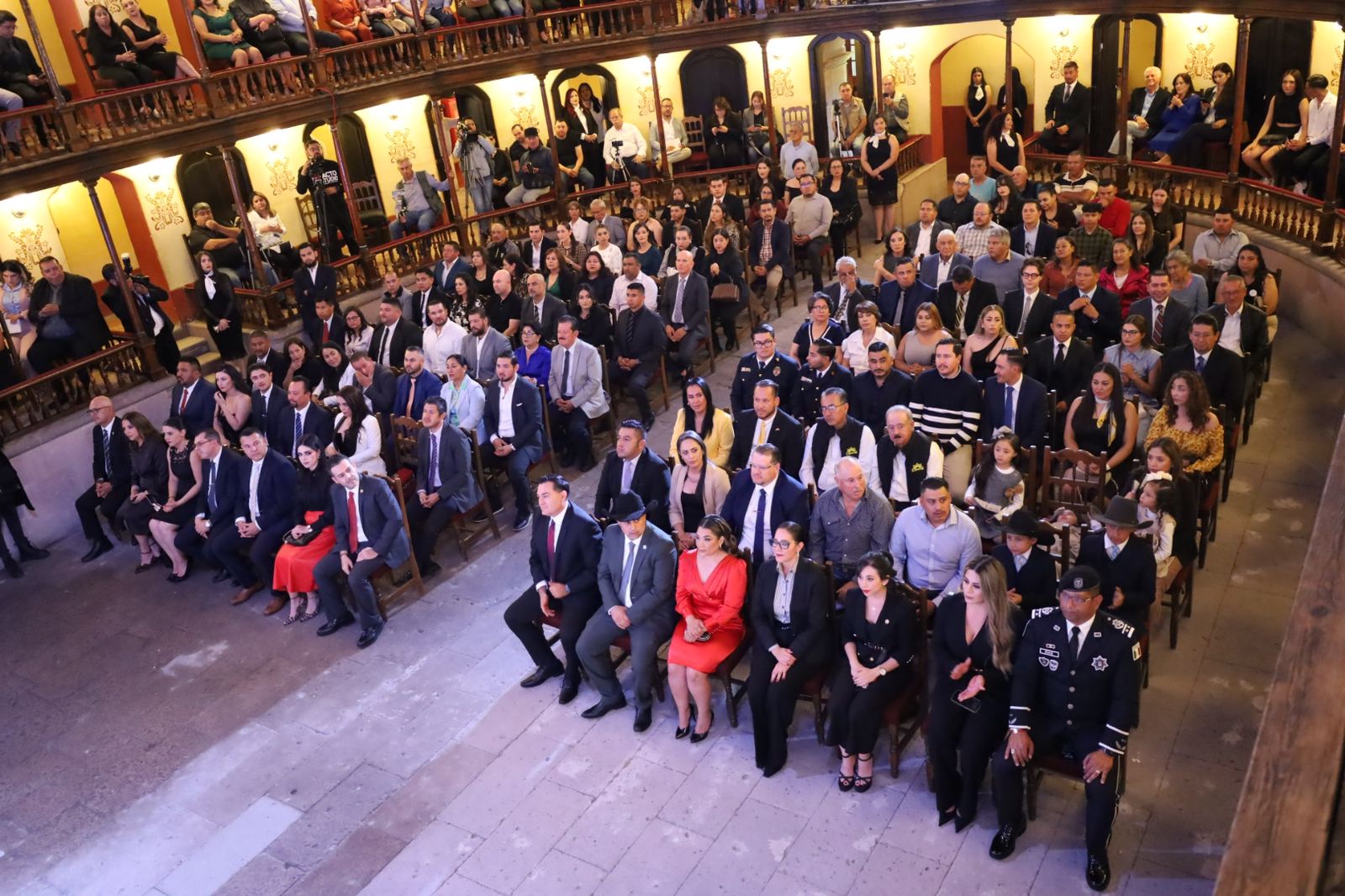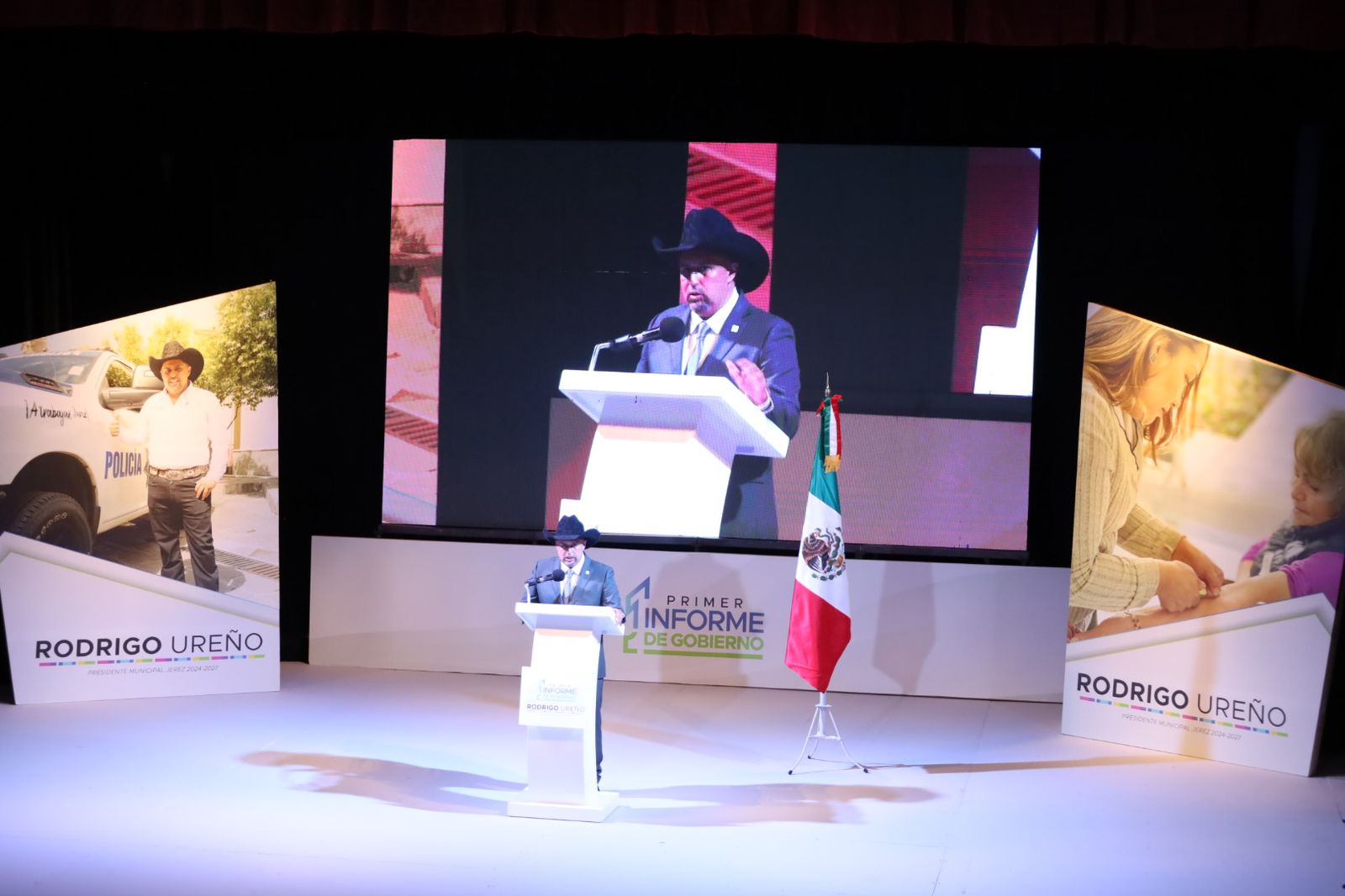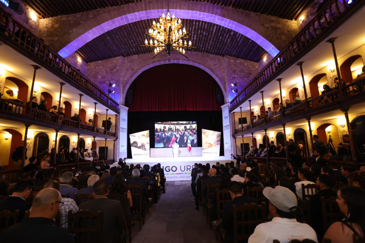 En un marco de unidad y compromiso, el presidente municipal Rodrigo Ureño rindió su Primer Informe de Gobierno ante la presencia de legistaldores, autoridades federales, estatales, municipales y jerezanos que se dieron cita en el Teatro Hinojosa, un espacio que, dijo, “simboliza la grandeza cultural de Jerez”.
