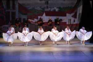 Jerez de García Salinas, Zac.- La noche de este lunes, el escenario del majestuoso Teatro Hinojosa fue engalanado por la Compañía de Danza Folclórica Cuezcomatl de Cuescomate, Veracruz, amenizada por la música alegre y distintiva veracruzana del grupo de sones jarochos de la Compañía Tetlalpan Son; deleitando y alegrando los corazones de las y los jerezanos y sus turistas, con coreografías y pasos impregnados de alegría, coloridos trajes típicos veracruzanos y una variedad del folklor jarocho; dentro del marco del XXIII Festival Nacional de Danza “Armando Correa González”, en su tercer día.