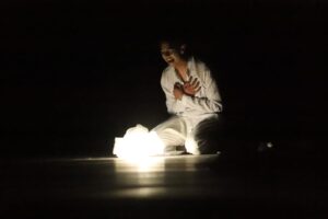 Se trata de una escenificación breve, de 25 minutos de duración, escrita y dirigida por el joven estudiante Javier Reyes Sánchez, alumno de la orientación en educación artística, que presentó sobre el escenario del Teatro Hinojosa a un grupo de actores. Mediante diálogos y evoluciones dancísticas, abordaron la temática relacionada con la difícil sensación de perder a un ser querido.