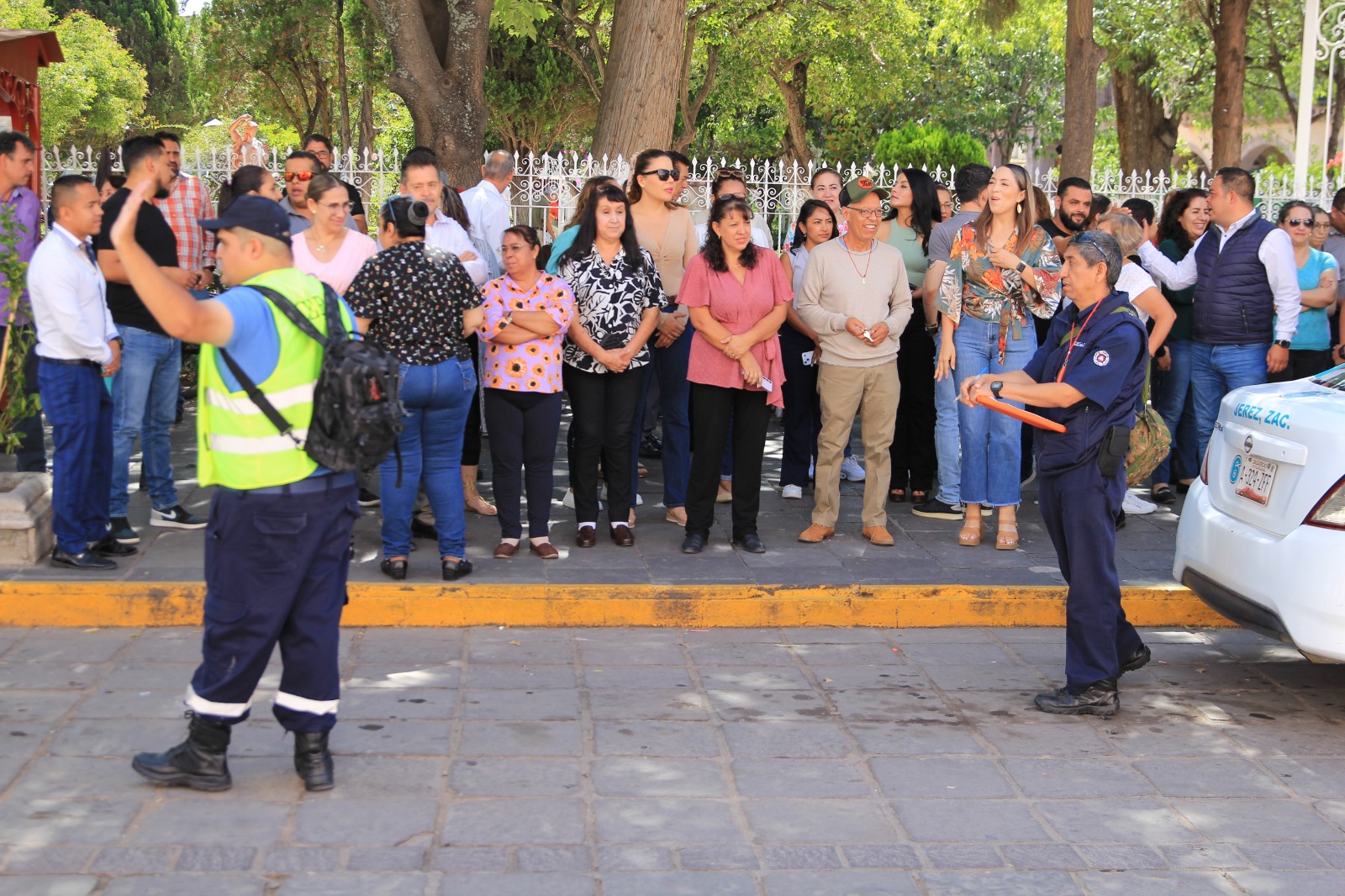 El Gobierno Municipal encabezado por el Alcalde Rodrigo Ureño Bañuelos, y la ciudadanía jerezana, se sumaron al Simulacro Nacional de Evacuación 2024, reiterando así su interés en la cultura de prevención y autoprotección ante contingencias.