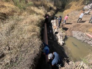 En atención a reportes ciudadanos y con el compromiso del presidente municipal Humberto Salazar Contreras para erradicar un foco de infección en esa zona, así como el brindar un servicio puntual y cercano a la gente, se arreglaron dos tramos del ducto que estaban dañados y vertían aguas negras, lo que provocaba serias afectaciones al medio ambiente, así como a vecinos aledaños al río, debido a los malos olores que despedían las aguas.