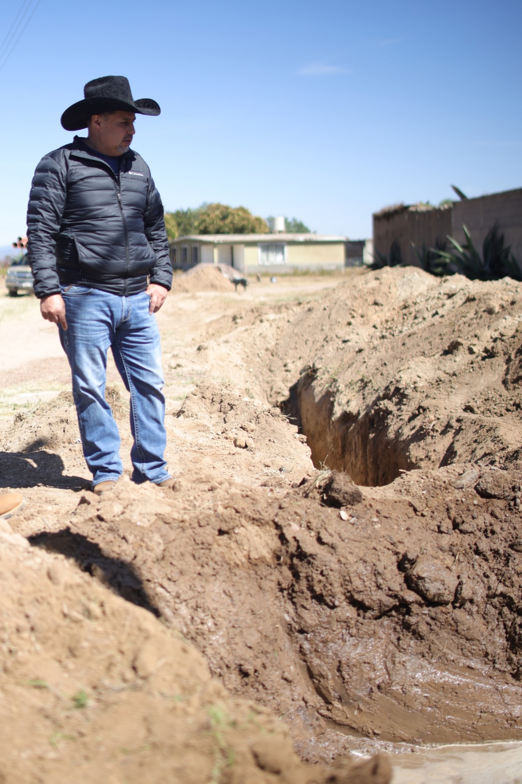 Acompañado de Jesús Castañeda de Haro, Director del Sistema Municipal de Agua Potable y Alcantarillado de Jerez (SIMAPAJ), constataron la labor que se hace en la calle Azteca en esa comunidad, donde se reponen 160 metros lineales (ml) de red distribuidos de la siguiente manera, 130 ml de tubería de PVC de ocho pulgadas de diámetro para la red general y treinta ml para el colector de aguas residuales de ese lugar, asimismo se verificó la construcción de tres pozos de visita.
