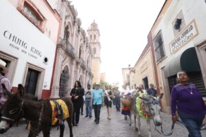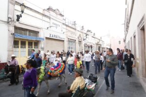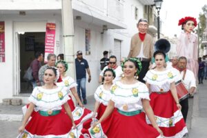 Jerez, Zac. -Al son de la tambora, en la tarde de este martes, como parte de las festividades del 3er Encuentro Estatal de Pueblos Mágicos que tiene lugar en Jerez, el pueblo mágico más alegre, se llevó a cabo la tradicional callejoneada.