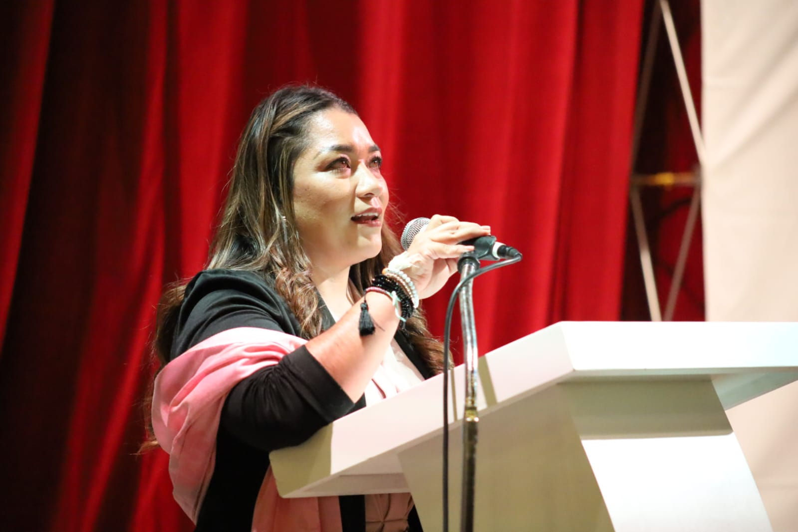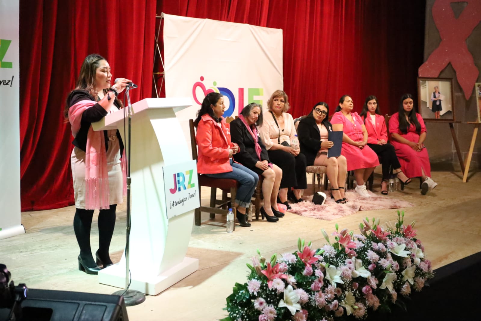 En un emotivo y multitudinario Conversatorio Rosa organizado para concientizar sobre el cáncer de mama, protagonizado por siete invitadas con experiencias personales o cercanas a él, la Presidenta Honorífica del DIF Jerez Estefana Casas González, hizo un llamado a la sociedad a trabajar en conjunto por la salud de las mujeres, por la erradicación de esta enfermad.