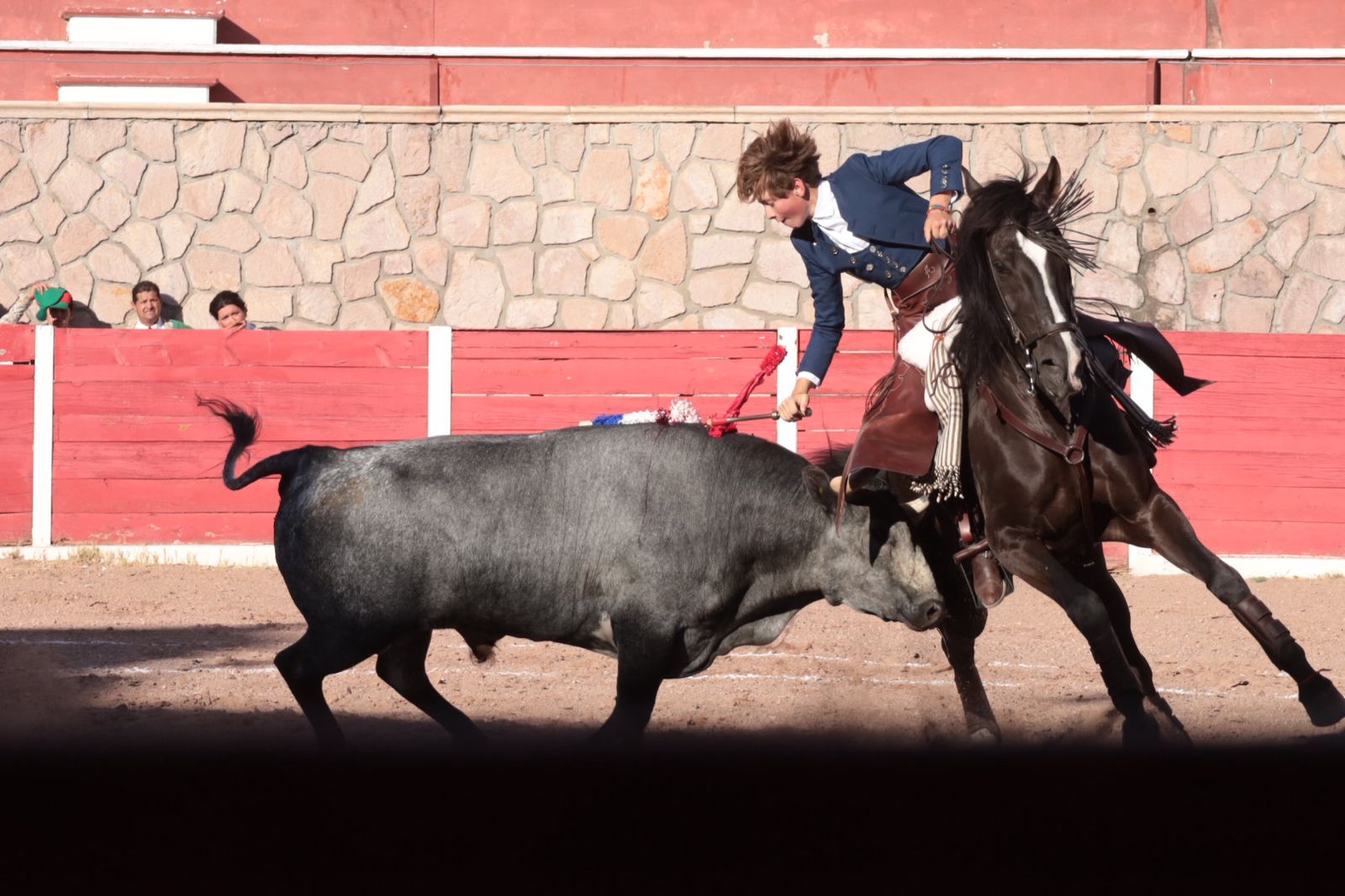 El joven caballista puso alegría al toreo, despachando de forma certera y logrando cortar las dos orejas del segundo de su lote, con lo que consiguió una valiosa salida en hombros.