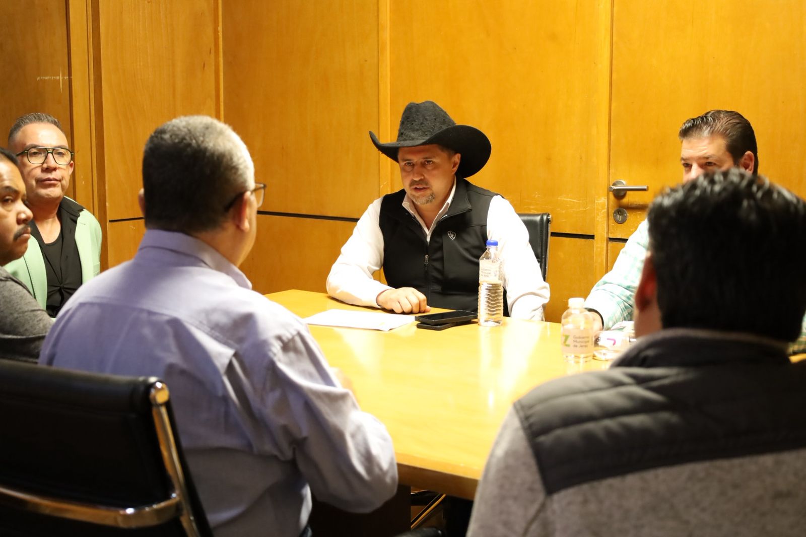 El presidente municipal Rodrigo Ureño sostuvo una reunión de trabajo con Miguel Ibarra, presidente de la Cámara Nacional de Comercio (CANACO) en Jerez, así como con representantes del sector comercial del municipio. En el encuentro también participó el secretario de Gobierno, Samuel Berumen.