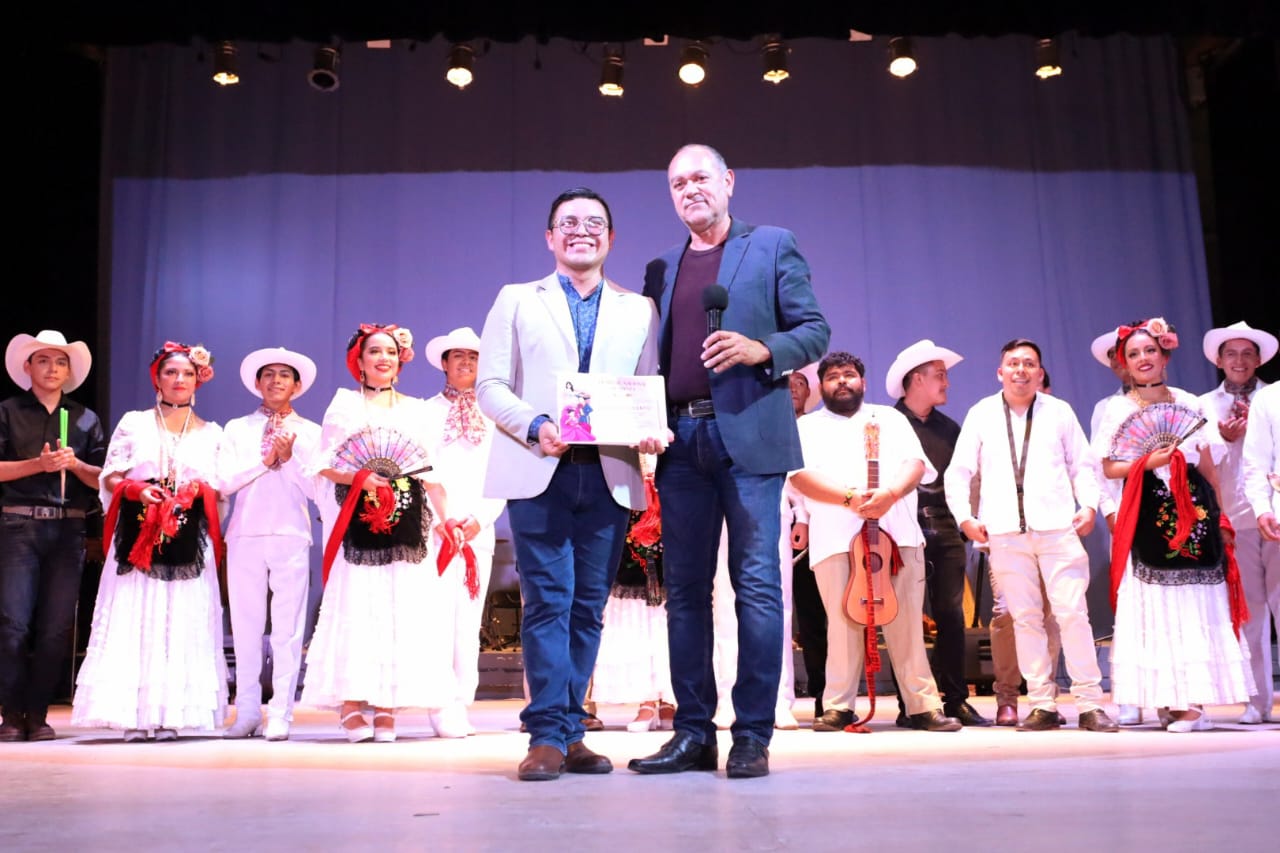 El Director del Instituto Jerezano de Cultura (IJC), Víctor Hugo Huízar Iturriaga, realizó la entrega del reconocimiento a nombre del Ayuntamiento, por su destacada participación en el Festival Nacional.