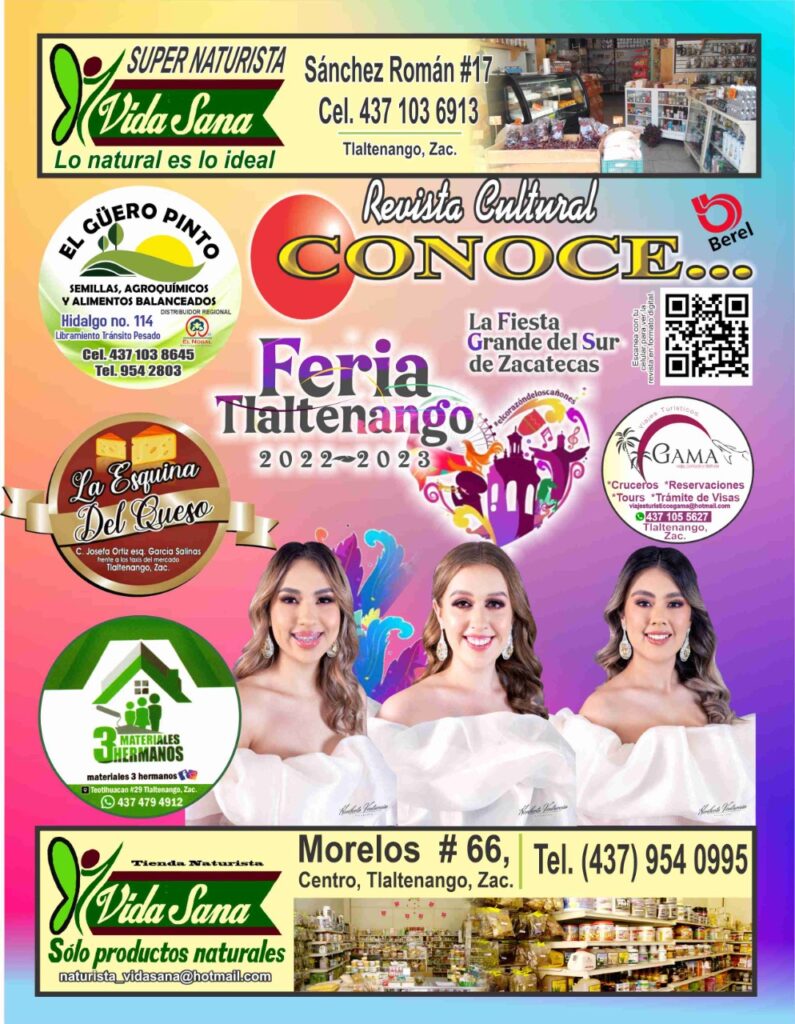 Una vez más nos honramos  en presentar la Revista Cultural ´´Conoce´´ y  la ´´Fiesta Grande del Sur de Zacatecas 2022-2023´´ que se celebra en la región del Cañón de Tlaltenango.