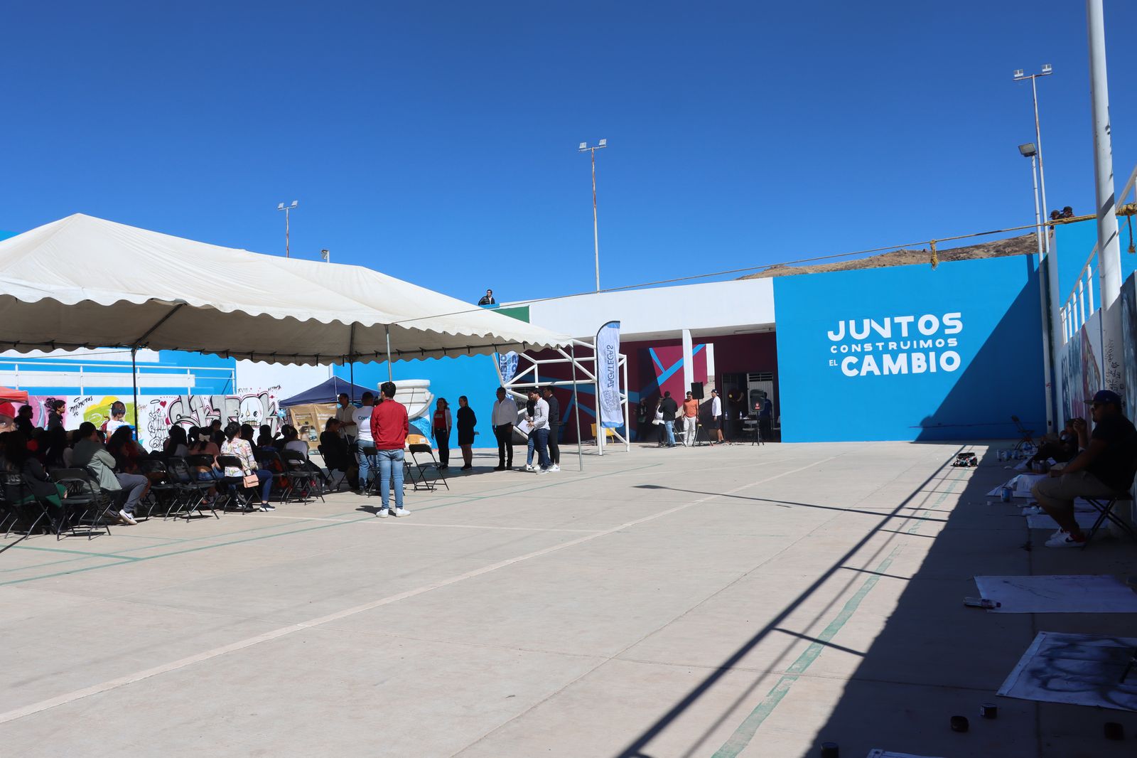 Zacatecas, Zac.- En el marco de su compromiso con el fomento de la cultura y el fortalecimiento del tejido social, la Presidenta Honorífica del DIF Municipal, Karla Estrada, clausuró con gran éxito el Concurso de Grafiti «4 Elementos», en el Polideportivo Alma Obrera.
