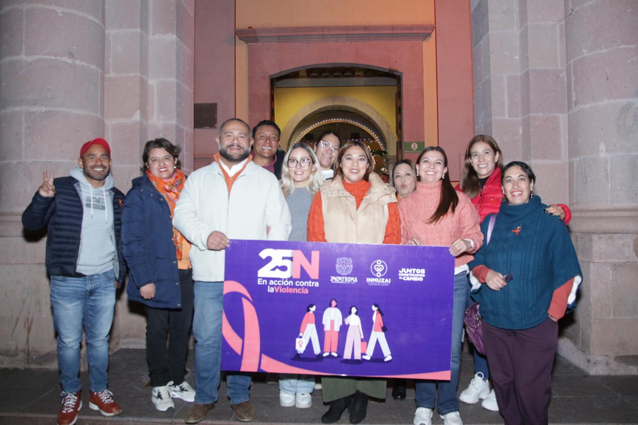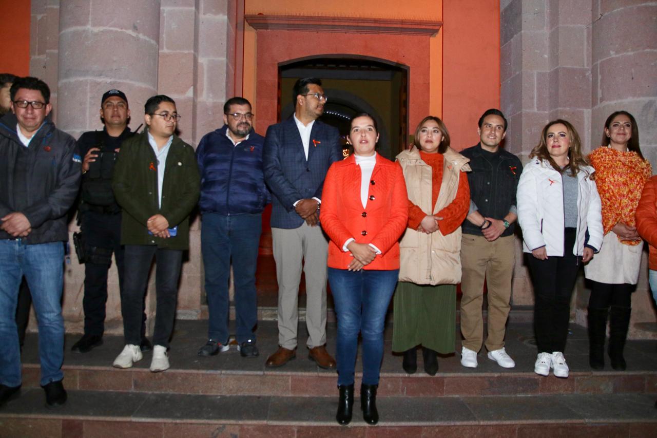 Zacatecas, Zac.- Desde el primer minuto de este lunes, el Ayuntamiento de Zacatecas, presidido por el alcalde Miguel Varela, dio inicio a las actividades conmemorativas del 25 de noviembre, Día Internacional de la Erradicación de la Violencia contra la Mujer, con el encendido simbólico en color naranja de la Casa Municipal de Cultura, como un llamado a la reflexión y acción en favor de los derechos de las mujeres.