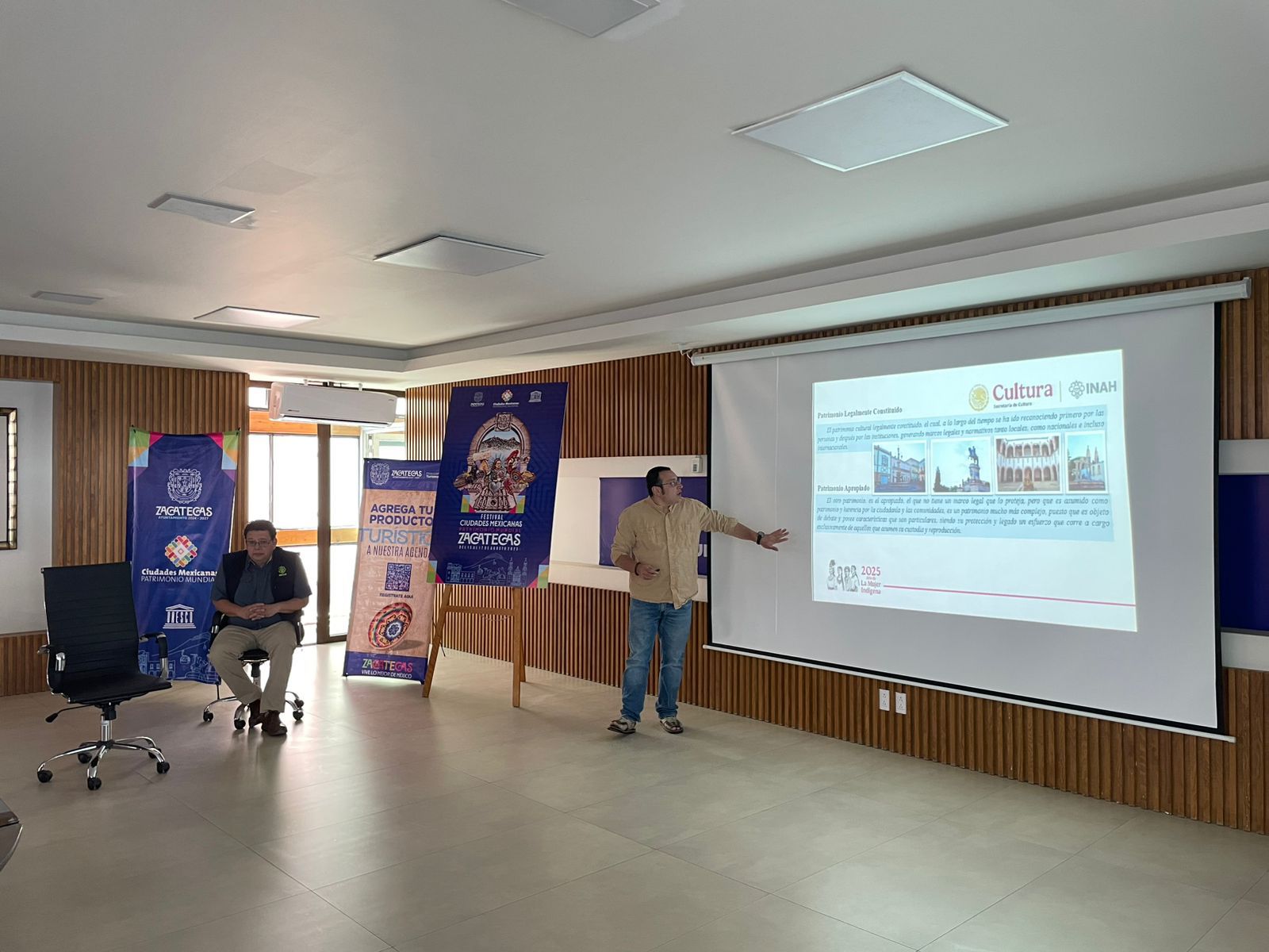 Zacatecas, Zacatecas.- Este miércoles bajo la visión del alcalde Miguel Varela, y en el marco de los preparativos del Festival de Ciudades Mexicanas Patrimonio Mundial, se llevó a cabo el primer día de capacitación impartido por el Instituto Nacional de Antropología e Historia (INAH), dirigido al personal de la Dirección de Turismo Municipal, así como a practicantes y comisionados de distintas áreas del Ayuntamiento de Zacatecas.