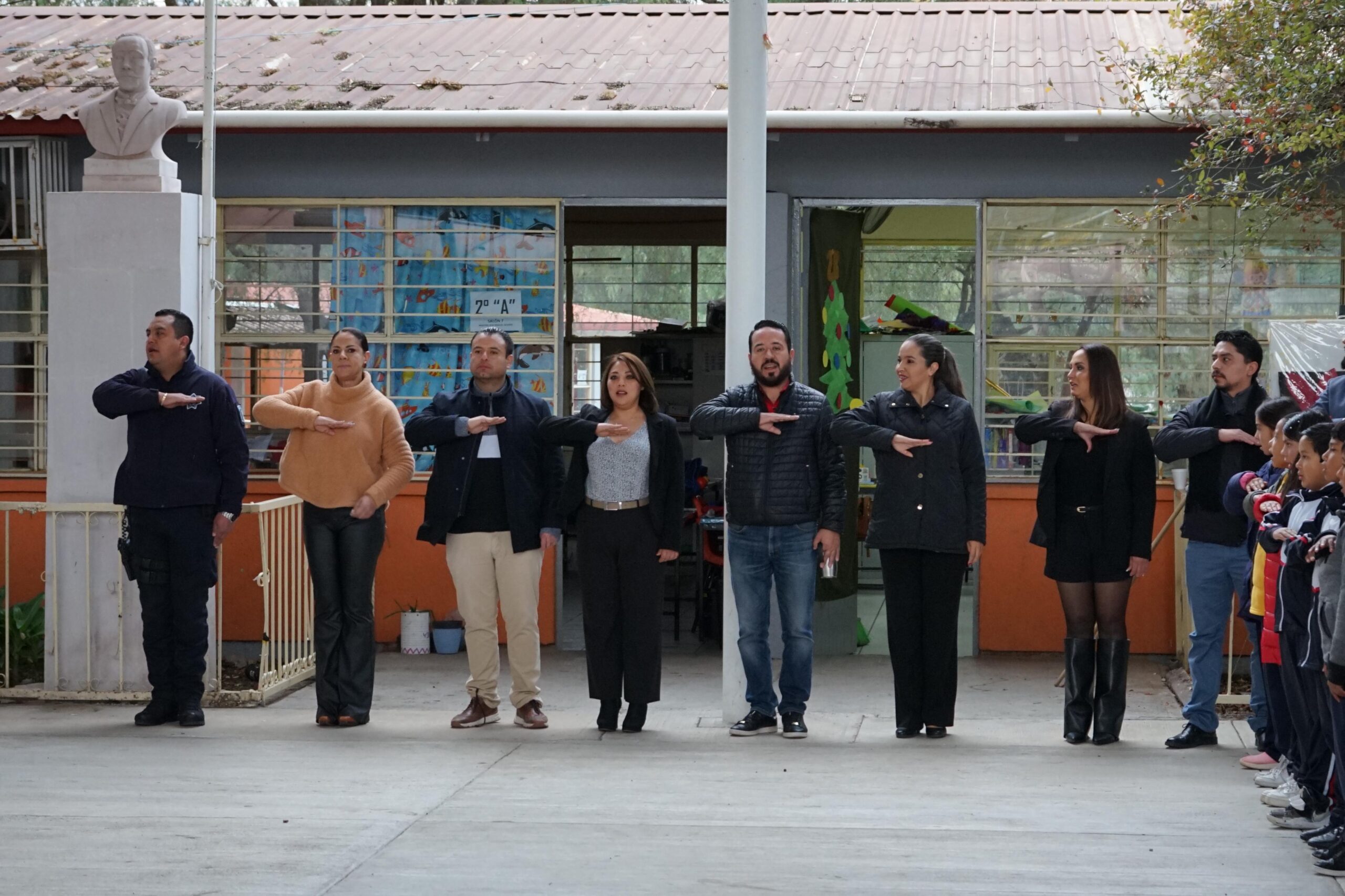 Durante el acto protocolario reafirmó el compromiso no solo de acudir a este tipo de eventos para rendir honores al lábaro patrio, sino detectar las necesidades que requieren las diversas escuelas, y realizar el aporte que desde la Presidencia Municipal corresponde para contribuir al mejoramiento o gestión en sus necesidades.