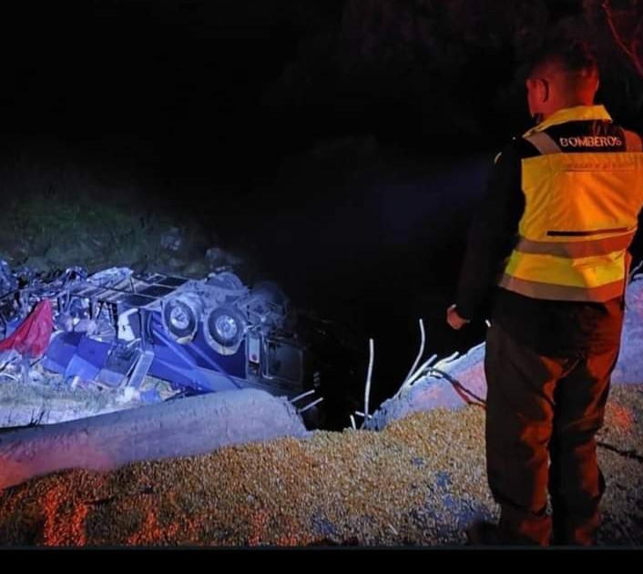 Jerez Eco Noticias/ Aguascalientes.- Lamentable accidente se suscito la madrugada de este sábado entre un autobús de la línea Omnibus y un tráiler con remolque, la unidad de pasajeros al chocar salió de la carretera, volcando y saliendo disparado hacia un barranco con una profundidad aproximada de 10 metros.