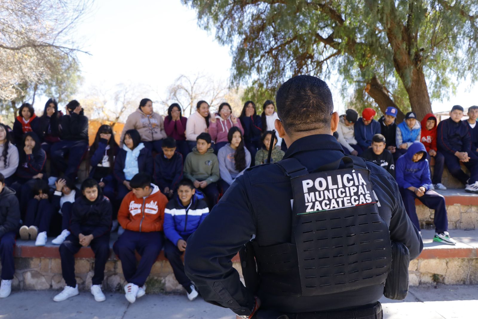 El Ayuntamiento de Zacatecas, a través de la Secretaría de Seguridad Pública Municipal, llegó a la Telesecundaria “Ramón López Velarde”, en la comunidad de Cieneguillas, con el programa Escuela Segura.