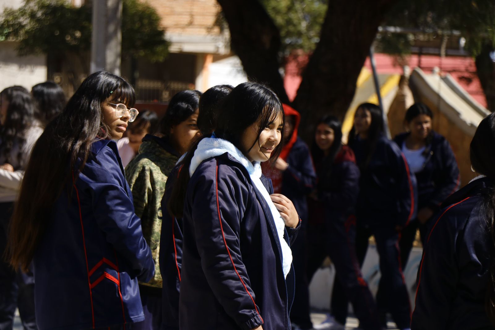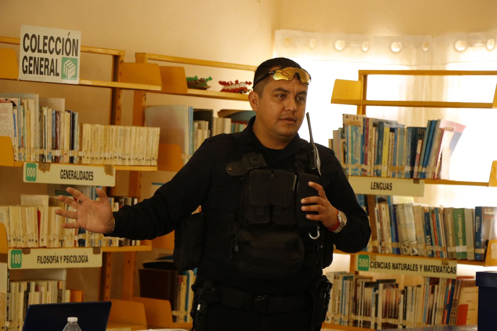 Más de 100 alumnos de primero, segundo y tercer grado recibieron a elementos operativos de la corporación, así como personal de los departamentos de Psicología y Trabajo Social.