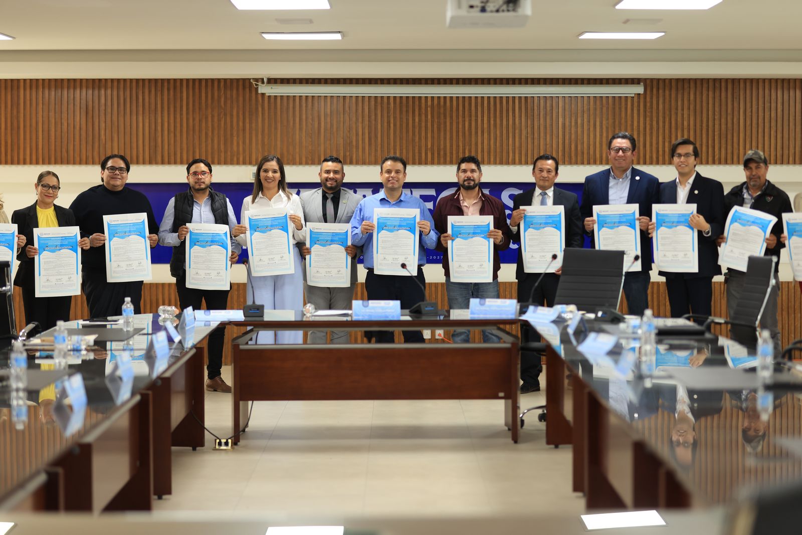 Acompañaron al alcalde en esta presentación la síndica municipal Wendy Valdez; la Directora General de Solidaridad y Desarrollo Humano, Nancy Espinoza; la titular del Órgano Interno de Control, Elba Liliana García Arredondo; la regidora y presidenta de la Comisión Edilicia de Desarrollo Económico, Claudia Anaya Vázquez; el regidor Bernardo Ibarra, y el encargado de la Unidad de Emprendedores Marco Antonio Salazar.