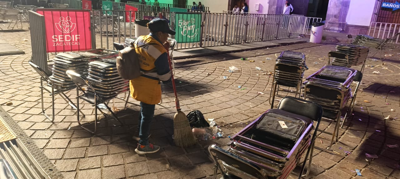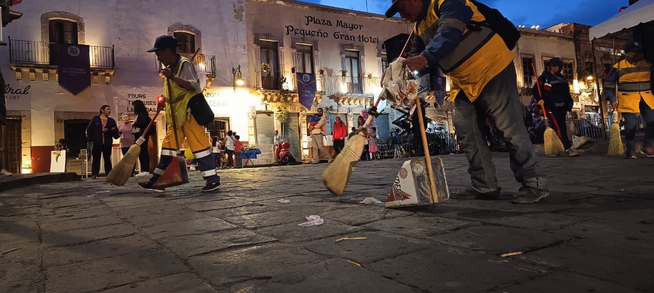REALIZA AYUNTAMIENTO DE ZACATECAS LABORES DE LIMPIEZA EN PLAZA DE ARMAS TRAS EVENTO INFANTIL