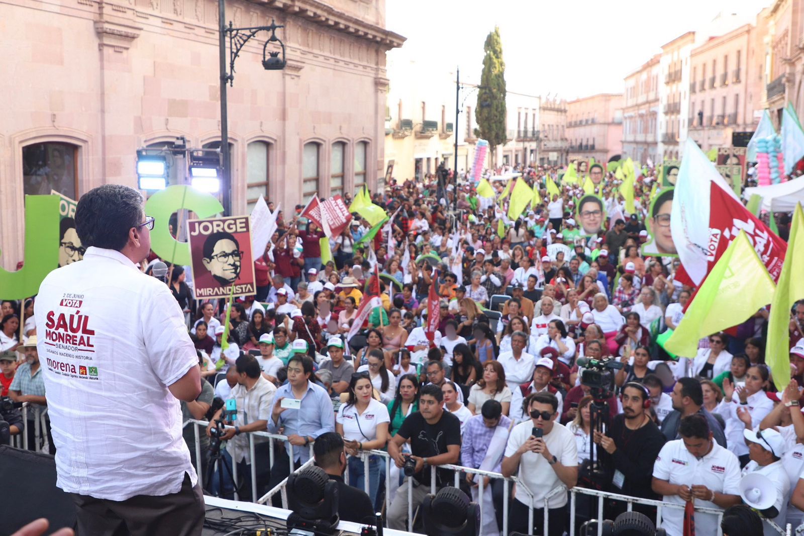 Saúl invitó a la ciudanía zacatecana a que reflexionen su voto, que lo hagan con libertad, sin miedo y pensando en un futuro mejor, salir a celebrar a la democracia ejerciéndolo este próximo domingo 2 de junio desde muy temprano, jóvenes, mujeres, hombres, personas adultas mayores, quienes decidirán una vez más; “qué quieren, más de la vieja política y corrupción o un proyecto de regeneración nacional y de transformación”.