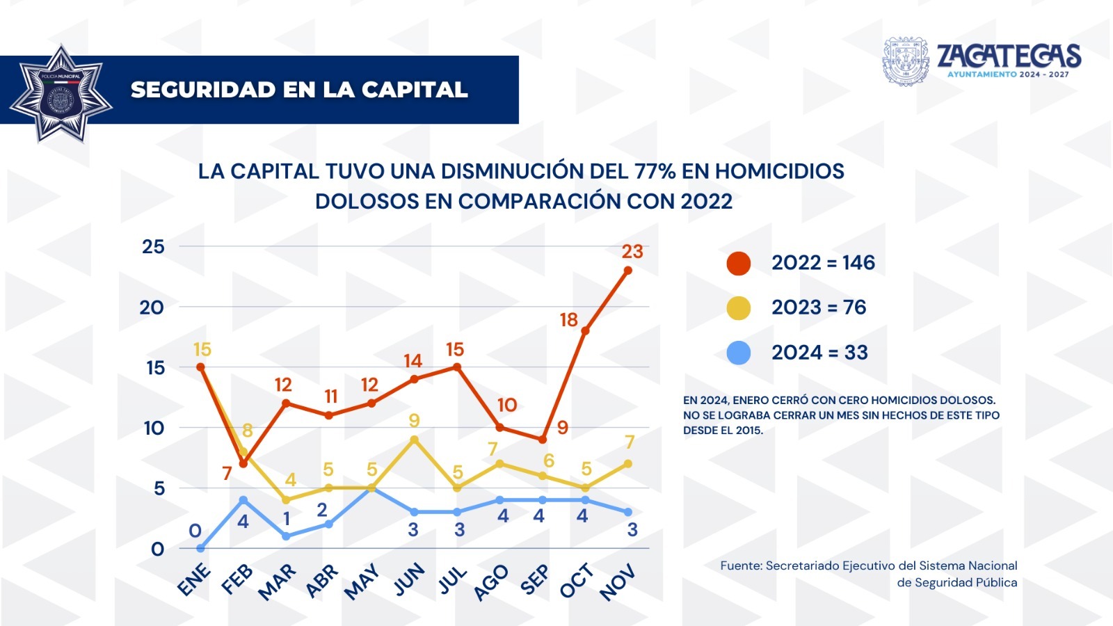 ZACATECAS CAPITAL AVANZA EN LA DISMINUCIÓN DE LA INCIDENCIA DELICTIVA Y FORTALECE LA SEGURIDAD PÚBLICA